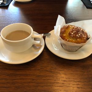 ①まず船着き場の近くの田舎風なカフェに到着するとツアー代金に含まれている朝食(マフィンとコーヒー)で一休み。このカフェからは海が展望できるので期待が高まります。