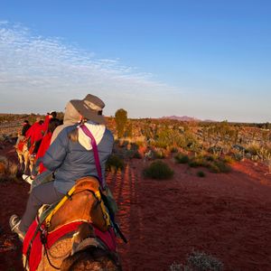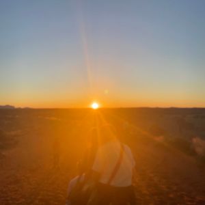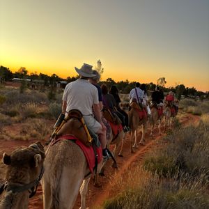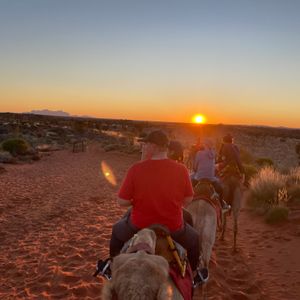ラクダに乗りながら、ウルル&カタジュタ、サンセットが見えとても綺麗で貴重な経験でした。
