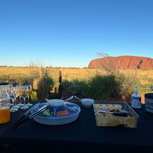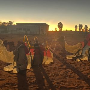 ガイドさんがウルルが綺麗に見えるタイミングでラクダに乗っている姿を写真撮影してくれます。素晴らしい映える写真が撮れます!4月3週目の朝に参加しましたが凍えるほど寒かったのでダウンやカイロ、手袋の用意があるといいです。