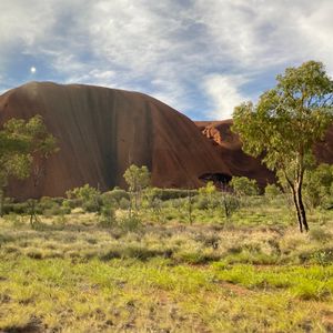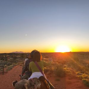 ウルルを眺め、後ろにはカタジュタと月もあり、何とも贅沢な場所でサンライズを楽しめました。