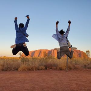 ウルル麓めぐりで, 記念撮影♪リゾート地で, ホテル送迎+サンセット/ サンライズなど, 主要スポットがセットになったプランで, 手間なく周遊する事出来ました!個人でも回ることは出来ると思いますが, 見知らぬ土地の滞在だったので, ガイド付きで安心して, 滞在する事が出来ました。日中の観光と, バーベキューなどもして, ウルルでの滞在を存分に満喫する事が出来ました!^^♪