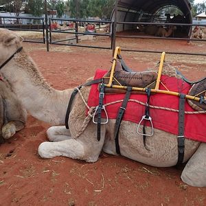 ラクダファームの後ろの高原を縦一列でツアー参加者みんなでらくだに乗ってサンセットポイントを目指します。後ろのラクダが近かったので、ちょいちょい鼻をなでてました、大人しくて、鼻はフニフニ柔らかくて可愛かったです。サンセットポイントに到着するまでに数回の撮影ポイントがあり、カメラを渡すとスタッフさんが写真を撮ってくれます。ラクダに乗る私たち、そしてバックにはエアーズロック、すごいいい写真が撮れます。最後はラクダと2ショット撮れます。動物好きにはたまらない、らくだがめっさ可愛いです。