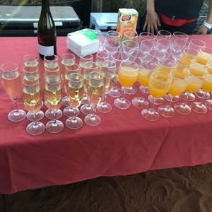 シャンパンを飲みながらのサンセット鑑賞は、アボリジニの民族楽器の音色が、エアーズロツクとカタジュタのサンセットにとてもマッチしていて、時間と共に変化していく美しい景色と音色が感動的でした。食事の内容もいろんな種類があって美味しく頂きました。新月だったので、星座もとても綺麗に見えました。