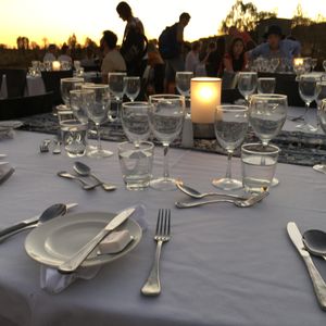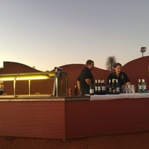 夕陽を浴びるウルルを見ながらシャンパンを頂き、ディナー会場に移動。8人掛けの大きなテーブルに案内されるため、ツアーに参加している初対面の方達と向かい合わせになります。2人きりでディナーという感じではないですが、たまたま隣に座られた日本人のご夫婦と仲良くなり、それはそれで楽しかったです。