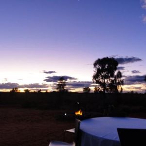 ホテルからバスで15分位で砂漠の高台へ。そこでシャンパンやジュースを飲みながらウルルの夕日を見ます。日が落ちたら高台を降りて食事会場へ移動しバイキング形式の食事です。食後にスタートークがついてます。周囲が真っ暗なので星がとてもキレイに見えました。天の川・南十字星もばっちり!会場には天体望遠鏡も置いてあり無料で使うことができます。全て英語ですので英語の苦手な方は現地で日本語のスタートークも追加料金で頼めます。6月下旬に参加しましたが、日が落ちると非常に寒いです。食事が終わった頃からポンチョを貸してもらえますが、カイロがあっても良い位です。トイレは少し離れてますがちゃんとあります。
