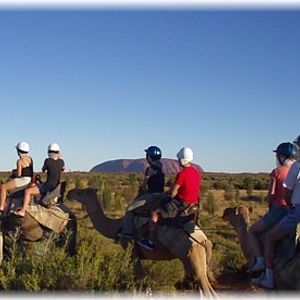 ラクダにのんびり揺られて、途中2度ほど止まり ウルルと夕焼けを眺めました。