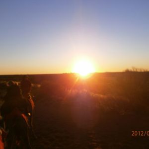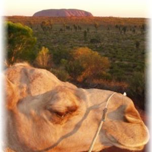 暮れなずむエアーズロックの土漠を、牧童にひきつれらたらくだに揺られながら一時間と少しのらくだツアーを楽しんだ。途中2回ほどらくだを止め、夕景のウルルや夕焼けを写真撮影し(photo 2)、また牧童がらくだ上のツアー参加者の写真を撮ってくれた。