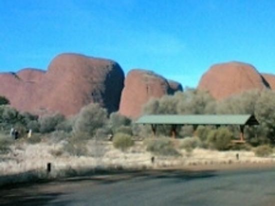 はじめはカタジュタに向かい、「風の谷」を散策しました。その前に撮影ポイントにいってカタジュタを見ましたが、その姿は美しく、大変驚きました。続いて散策ですが、これは冬の時期(7~8月)に行っても絶対に水が必要ですので忘れずに!ちなみに「風の谷のナウシカ」とは関係ないそうです…。続いてウルル。たくさんの先客があってきちんと見られるかなと思っていたのですが、場所が広いので何の心配もいりません。食べ物や飲み物が付いていますので、節約したい人はここでお腹を満たすのもいいかも…。でも、他の人のことは忘れてはいけません!料理の方は日本人には少し合わないかもしれませんのでご承知おきを!それにしても夕日に照らされるウルルの姿は素晴らしかったですよ!また、日が沈んだ後、ウルルの空がオレンジから少し青っぽくなるのが不思議でした。そういうのも日本では見られないのではないかと思います。