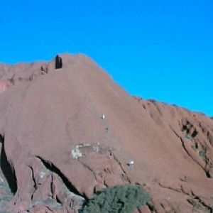 美しかったですよ、夜明けのウルル。日が差してきたときのオレンジ色は感嘆の声しか出ませんでした。そして、思った以上にきつかったですよ、ウルル登山。ベテランのガイドさんが言っていました。「私は1度しか登ったことがありません」。その言葉からも察することが出来ると思います。確かにきつい!でも、その分の感動は保証します!登っている途中で鎖がありますが、鎖を持って登ると結構重さがありますのでその辺は頭に入れておいてください。また、鎖が終わったところであきらめてしまう人がいますが、そこからは鎖があるところほど傾斜はきつくないので頑張って下さい!それと、麓と上では風の強さが違いますので注意して下さいね!