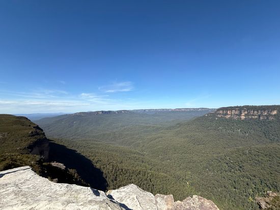 閉じる断崖絶壁に座って見たブルーマウンテンが綺麗だった。ガイドさんに写真を撮ってもらって良い思い出になりました。