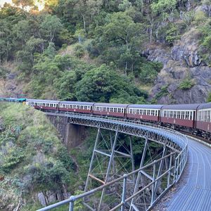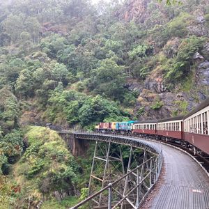 アクティビティ盛り盛りのツアー!ガイドのダンさんも、すごく良い方で滞りなく快適に過ごせました。列車ではゆっくりと時間をかけて、森の中を走行。途中に素晴らしい景色がいくつも見られます。アーミーダック(水陸両用車)もスカイレールも、キュランダに行ったら絶対に乗るのをオススメします!選べるアクティビティは、伝統ダンス鑑賞、ミニ動物園、コアラとの写真撮影(抱っこは別料金で、コアラの状態によってできない日もある)から選べます!私たちはミニ動物園にしましたが、園内に放し飼いされているカンガルーにたくさん触れ合えました。コアラも近距離にいたので、写真も撮れましたし、満足です!グルメではキュランダコーヒーが美味しかったです。グルテンフリークッキーも売っていました。あ!ランチのハンバーガーは予想以上に美味しくて、パテのお肉はすごい厚みでしたが、赤身?のお肉で、胃もたれせずに食べ切れました!フィッシュアンドチップスとどちらか選べるので、2人以上で参加する方は、一つずつ選んでシェアするのもありです!私たちは揚げ物が苦手なので2人ともハンバーガーにしましたが。笑 フィッシュ&チップスは実際に、なかなかのボリュームでした!