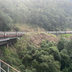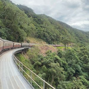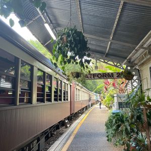 TV世界の車窓からのキュランダ、私達が駅に着いた時まだ前の便が故障で出てなくあわや欠便?かと焦りましたが幸い遅ればせながら出発でき殊更キュランダの列車と景色を嬉しく感じました。駅も工事の歴史が写真やパネルでわかりやすく説明してあり飽きません。途中の駅の撮影タイムは列車と滝の良い写真が撮れます。