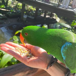 キュランダ村のコアラガーデンでは団体のツアーがちょうどコアラ写真を撮っていたので運が悪いと並ぶかもしれません。お隣のバードワールドがとても楽しかったです。入口で3ドルで餌を買えば鳥たちが肩に乗ってきて餌をおねだりします。とてもかわいいです。噛まれたり、肩に爪が食いこみますのでご注意ください。肩にタオルかショールをかけておくといいかと思います。