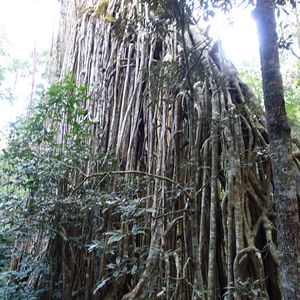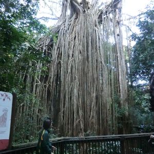 午前のキュランダに力を入れていたので、その後の「野生動物体験」についてはあまり考えていなかったのですが、バスで移動しながら、そのとき、その地に姿を見せる動物を車窓から、あるいは、バスを降りて探索するミニトリップでした。偶然の出会いに期待する旅か~と途中で気づきました(笑)。アリ塚のシロアリ、カンガルー、ロックワラビー、カワセミ、オウムなどなど。すごいイチジクの木も見ました。残念ながらカモノハシは私は見ることができなかったのですが、一緒のグループの方が撮った動画を夕食時に皆で鑑賞。動物園とはまた違う楽しさがありました。ガイドの方も運転手の方もフレンドリーに接してくださり、楽しい時間となりました。