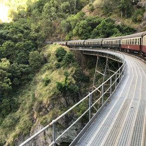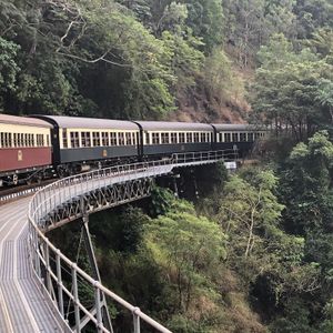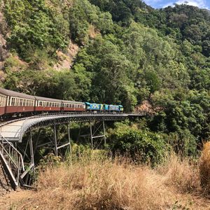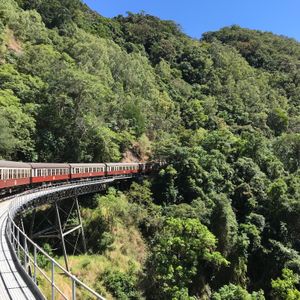 初めてのキュランダでした。行きのスカイレールは高くて長く絶景でした!途中駅で素晴らしい滝も感動しました。またスタッフもフレンドリーで、片言ながら日本語も話され好感持ちました。ただし時期的に寒目で8月は上着必須です。帰りのトロッコも風情があり楽しめましたが、疲れと揺れで1時間程寝てしまいました 苦笑