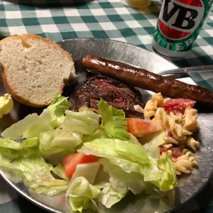 カモノハシを見ている間に運転手のおじさんがBBQの準備をしてくれ着いたらすぐにカンガルー、ワニのしっぽとオージービーフを焼いてくれました
