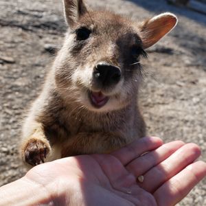 ロックワラビーへの餌付け体験は袋から顔出すワラビーにも餌をあげる事が出来て癒されました!