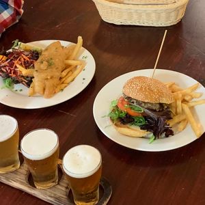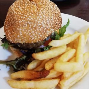 駅で降りるとすぐにキュランダホテルでの昼食。オージーバーガー かフィッシュ&チップスの選択だったので、夫婦で両方頼み、シェアしました。どちらもボリュームがあり、充分満腹になりました。