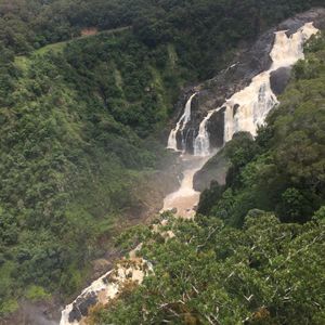 途中のバロン滝は水がゴーゴー流れ落ちていて迫力がありました。雨期なので、午後からのスカイレールは雨になりましたが、熱帯雨林の雨の風景を見られたので、それもいい経験でした。ただし、スカイレールの窓の上のほうがあきっぱなしなので、雨がしぶきこんできました。雨期ならタオルやビニールは持っておいたほうがいいかもしれません。ツアーでは、13:15がスカイレール予約時刻ですが、ガラガラだったので、少し早く乗りました。バロン駅では雨がきつかったので降りず、レッドピーク駅でボードウォークをしました。レッドピークは熱帯雨林のボードだけだっので、バロンでも降りておけばよかったと後悔しました。スミスフィールドは売店だけで解説などはありませんでした。集合時刻に間に合えばいいので、散策をしたい方は、時間を見ながら両方降りてみたらいいのではないかと思いますが、バロン滝までいくには時間がカツカツかもしれません。行きたい方は列車の中で、時間配分をガイドさんに聞いてみたらいいと思います。