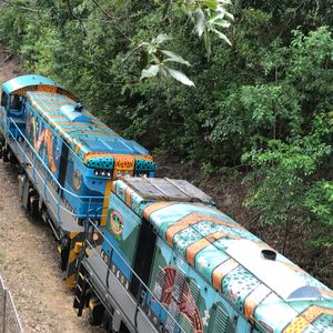 険しい崖や滝をめぐるアンティーク調の列車で、ツアーメンバーで一車両貸し切りでした。ゆったり見て回る事ができました。ここでもガイドさんの楽しい説明で飽きさせずに楽しませて頂きました。世界の車窓からで使われたロケ地から、CMのロケ地まで、様々な紹介があり楽しかったです。