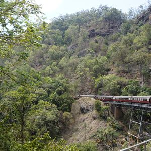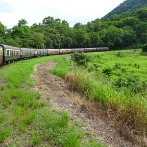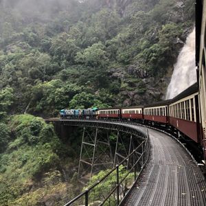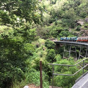 雨の中のキュランダ。心配も多々ありましたが、無事スカイレールも列車も乗れました。自然をたくさん感じられるツアーで大満足でした。ただ、キュランダの街に到着したと同時に大雨に見舞われ街散策を全然行えなかったのが非常に残念でした。しかし、雨のおかげで大迫力のバロン滝を見ることが出来たのでプラマイゼロと思っています。また晴れている時に行きたいなと思いました。