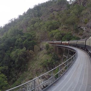キュランダ鉄道はまさに観光客のための列車で、滝が見えるポイントでは途中下車もでき、みどころのカーブでは徐行運転もしてくれます。