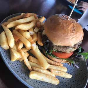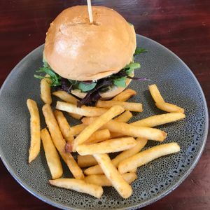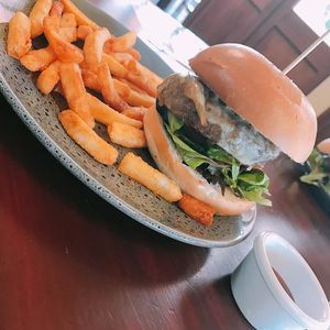 お昼ご飯のハンバーガーはボリューミー!ポテトが絶品。今までの人生で食べたポテトで一番おいしかったです。フィッシュ&チップスは残念ながら残してしまいました。香辛料のクセがすごい。酸っぱめのピクルスとか好きな方は好きな味ちゃうかなぁ。