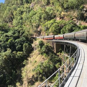 キュランダ鉄道、のんびり進む列車の窓から見える景色は絶景でした。キュランダホテルlunchはとても美味しかったです。コアラ抱っこ、アーミーダックで間近で見る熱帯雨林、スカイレールで上から見る熱帯雨林どちらも最高でした。大満足のこのツアーに参加して良かったです。