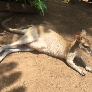 小さい動物園内に放し飼いにされたカンガルーも近くで触れ合え