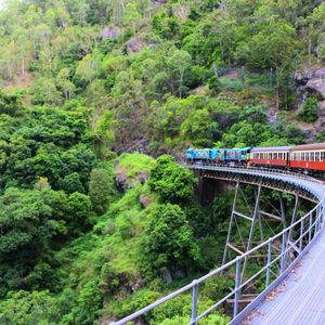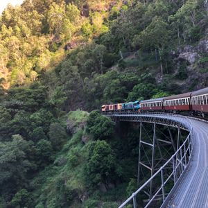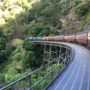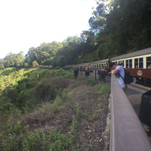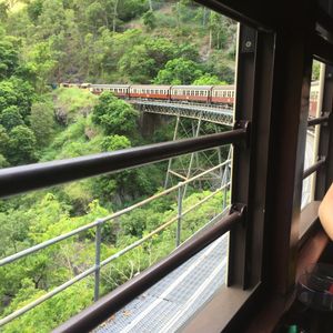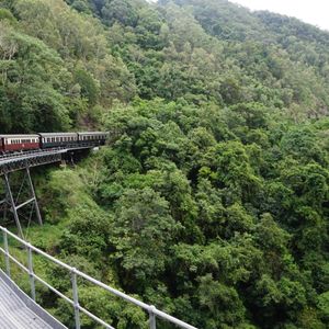 往路のスカイレールは眺望抜群。中間に2つある駅で下車して散策可能だが、ルートは決まっている。時間が合えばガイドツアーもあり、熱帯雨林の植生などを解説してくれる。Kuranda到着時間を気にしつつBaron Fallsも下車して見物しKurandaへ。レストランと土産物屋の数は多いので、特別な人気店以外は行列待ちはなさそう。Koala GardenやButterfly Sanctuaryのほか、動物園やクルーズもあるので、たっぷり一日楽しめる。ただし、Rainforestationに行く場合は、昼食と買い物の時間ぐらいしか取れないかも。復路の観光列車はゴールドクラスがお勧め。アルコール含むフリードリンクにナッツ・チーズなどのおつまみとデザートが出る。