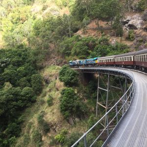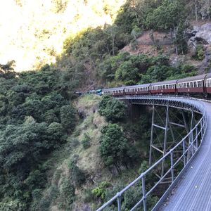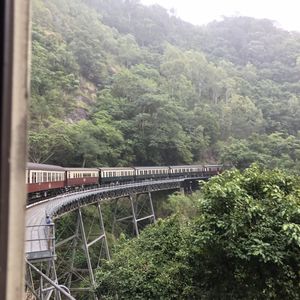 世界の車窓からのオープニングに出てくる鉄道かっこよかった。写真をとるのが結構難しかったがいい記念になった。キュランダの街はもうちょっと時間が欲しかった。おすすめのコーヒー、アイス、ハイチュウを回ったら時間が無くなってしまった。ワラビーとふれあい、コアラを抱っこ心が癒されました。スカイレールも最初は感動したが混んでいるため他の人達と一緒。気まずい空気も流れます。