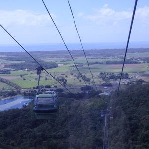 10月末キュランダへの旅。ホテルから少し歩いて、ピックアップ場所へ。バスに乗りスカイレール駅に到着。途中乗り継ぎで少し熱帯雨林を散策。