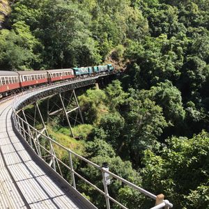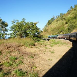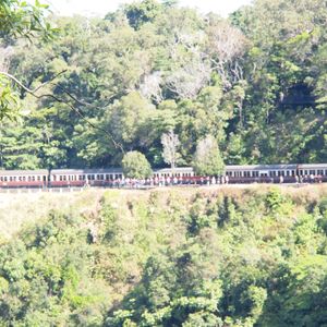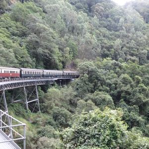 残念ながら天気が悪く、せっかくのスカイレールはほとんど何も見えませんでした。その後雨が上がったおかげで、キュランダ列車はきれいな景色が良く見えてよかったです。特に写真スポットでは停車してくれるので、外に降りて景色を楽しむこともできました。