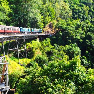 世界遺産に登録されたキュランダの熱帯雨林をレトロな列車で駆け抜ける高原鉄道や、森林との距離わずか数メートルの上空を走るスカイレールなど、目的地に行くまでの道中も楽しめるクイーンズランド湿潤熱帯地域の旅。到着地点である人里離れた雰囲気が漂う熱帯雨林に囲まれた「キュランダ」では、アボリジニの文化が詰まった色とりどりの地元工芸品をはじめ、幸せの青い蝶で有名なバタフライサンクチュアリや、コアラとの記念写真が撮れるコアラガーデン。更には水陸両用車が体験できるレインフォレステーション自然公園や、貴重な固有種を有するバードワールドなど、ケアンズ観光で絶対に外せないスポットが集います。アクティブに活動するなら、まるで恐竜映画さながらの景色が永遠に広がるデインツリー国立公園や、熱帯雨林と珊瑚礁が織りなす景勝地、ケープ・トリビュレーションなど、クイーンズランド湿潤熱帯地域ならではの光景と感動があなたを待ち受けます。