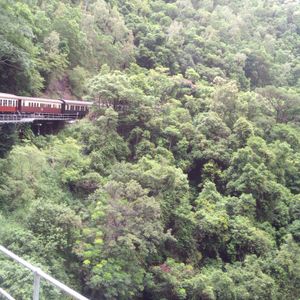 悪天のためスカイレールが急遽中止。楽しみにしていたのでショックはかなり大きかったのですが、雨季のため滝の水量が大きく、迫力満点でした!また、世界の車窓からでお馴染みのキュランダ電車からの眺めも最高!ガイドさんの対応もばっちりで、素敵な思い出になりました。