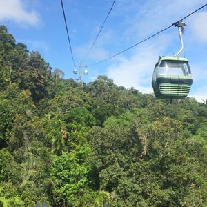 スカイウェイ(ロープウェイ)の乗り場迄、バスで。世界遺産の密林は、足元、窓から見事でした。