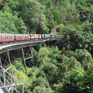 世界遺産に登録されたキュランダの熱帯雨林をレトロな列車で駆け抜ける高原鉄道や、森林との距離わずか数メートルの上空を走るスカイレールなど、目的地に行くまでの道中も楽しめるクイーンズランド湿潤熱帯地域の旅。到着地点である人里離れた雰囲気が漂う熱帯雨林に囲まれた「キュランダ」では、アボリジニの文化が詰まった色とりどりの地元工芸品をはじめ、幸せの青い蝶で有名なバタフライサンクチュアリや、コアラとの記念写真が撮れるコアラガーデン。更には水陸両用車が体験できるレインフォレステーション自然公園や、貴重な固有種を有するバードワールドなど、ケアンズ観光で絶対に外せないスポットが集います。アクティブに活動するなら、まるで恐竜映画さながらの景色が永遠に広がるデインツリー国立公園や、熱帯雨林と珊瑚礁が織りなす景勝地、ケープ・トリビュレーションなど、クイーンズランド湿潤熱帯地域ならではの光景と感動があなたを待ち受けます。