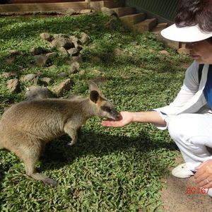 目的地のRainforestation&KurandaではArmyDuckへ乗り熱帯雨林巡り、ブッフェ形式の昼食、Koalaの抱っこ写真、Kangaroo&Wallabyへの餌付け(餌代別$2)等々。