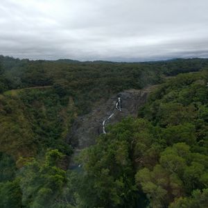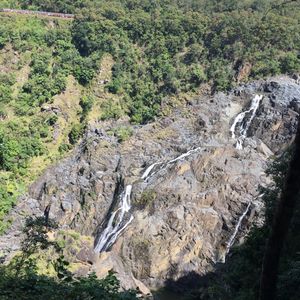 スカイレールの途中のボードウオークからもキュランダ鉄道の一時停車場所からも同じ滝が見えますが、乾期で雨が降らないためか水が少なく、豪快さがなくがっかりでした。