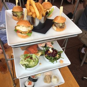そろそろ昼食時刻ということで、オペラキッチンにて、テイスティングプレートを注文。三段重ねのプレートに準備された料理は、他の人とカモメの注目するところでした。