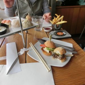 食事は予想以上に大きな3段プレートでどれもおいしかったのですが、女性2人には充分すぎる量でした。大きくて注目を浴びてしまい、隣のテーブルの人に「どうやってオーダーしたの?」と聞かれてちょっと困りましたが笑