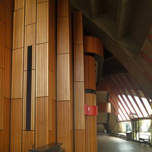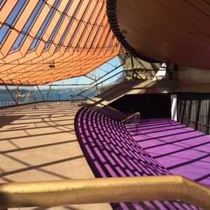 参加した回では、一番大きなホールを覗くことができ、ちょうどシドニー交響楽団のリハーサル中でした。撮影は不可、ですが、クラッシックに普段 縁の無い私でも感動しました。外側をみるだけと、中を見学するのは大違いです。一見の価値あります。ちなみにトイレもとっても、芸術的でおしゃれでした。