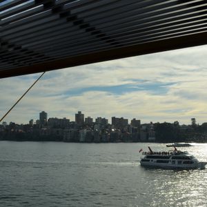 ビビッドシドニーが開催されていた時期に参加しました。コーヒーとクッキーの付いているクルーズです。ルート上は英語で説明があります。寒くなってくる時期でしたので甲板にいるのは寒く、船内にほとんどいました。参加者も多くなく、自由に船内移動できましたので、のんびりとシドニー湾クルーズを楽しめました。