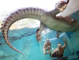 動物園内の餌付けではなく、自然な川の中で行われるこのツアーに魅力を感じて参加しました。はじめは夏の特に暑い時期だったのでワニはより探しにくいようで、探す時間が少しありました。川が茶色なので、背中と顔がざっと出たときには驚きました!いざ餌付け... 続きを読む