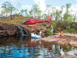 レンタカーでダーウイン空港の一画にある事務所へ夜明け前に出動。簡単なブリーフィングで、パイロット2名プラス4名乗りの小型機で離陸。キャサリン空港迄60分。タクシーでとある農場脇のヘリポートへ。直ぐ20分間の遊覧離陸してすぐにドアが無い事を知... 続きを読む