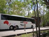 AAT Kingsの大型バスで出発。ガイド兼ドライバーのMel(女性)は明るく、おしゃべりも楽しかった。ウォータータンク・トイレもあり、冷房もよく効いてて快適なドライブ。壁画の色・描かれた由来などはオーディオガイドで理解できました。実物はやはり圧倒されます。