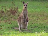 カンガルーの群れも多くおり、子供がいるのも見られました。動物園とは違う、あまり寝そべらず、周りを警戒しながら食事している姿がありました。