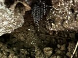 3か所目はパーリングブルックの滝展望台からの景色、5分程歩いて滝側からの景色・写真撮影。4か所目は50分程で西側稜線のナチュラルブリッジに到着。23年前夜の土ボタルに参加しましたが、昼間のナチュラルブリッジ・レインフォレストウォークは全く別の場所に感じます、夜は真っ暗なので当然ですが。ガイドさんが歩道の土手に土ボタルの粘液ツララを見つけてくれて写真を撮ることができました。お尻の先端から垂らす粘液ツララに夜光に寄ってくる虫を捕食するそうです。