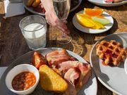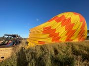予定日に天候不順でキャンセルになったのですが、翌々日に再度チャレンジ、AM3:00過ぎにホテルにお迎えが来て、風の様子を待ちながらAM6:00~7:00まで空からの広大な景色を楽しみました 着陸した時にゴンドラバスケットが倒れて寝そべった体制で降りたことに驚きました! バルーンの片付けもみんなで一緒にしたり、バルーンを乗せたトラックの荷台につかまりながら牧場内の牛たちの間を通り抜けて行ったことも