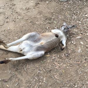 カンガルーがゴロゴロしている場所があって、触ってもなにしてもいいようです。2歳の娘は尻尾を持ち上げようと必死でした。